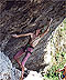 Z díry doleva převisem na balkónek a převislou stěnou na temeno.