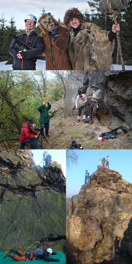 Film se natáčel několik let v různých lokalitách, často ve velice obtížných až extrémních podmínkách po celém světě (např. na Islandu, v severní stěně Eigeru, na věžích ve světoznámém pyskařském letovisku Ostrov, v Českém Drsnoskalsku, atd.). Při jeho natáčení byla použita nejmodernější technika a filmařské metody, jako je natáčení z kamerového jeřábu, bagru či míchačky na beton, klíčovací technika hnědého plátna (vhodná pro bojácné milovníky adrenalínu) a kamerové jízdy na sáňkách. K těm pokud možno nejlepším hereckým ale i horolezeckým výkonům byli aktéři rafinovaně motivováni přísliby tučné finanční odměny (dosud nerealizované), slávy a popularity znamenající odrazový můstek ke slibné kariéře v Bollywoodu a ve filmech Zdeňka Trošky. Pomluvám o pohrůžkách hrubým násilím a jejich realizací prosím nevěřte. Přesto na natáčení celý štáb vzpomíná s láskou a vzájemným porozumněním, které vám tímto esoterickým vir(tu)álním kAnálem posíláme.