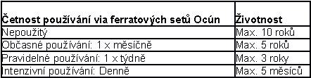 Via ferratových setů Ocún s pružnou smyčkou typ „trombon“, ani ferratových setů Ocún s pevnou smyčkou.