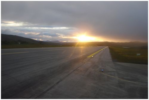 Na nádraží zrovna probíhá přestavba tratě a tak jsme nasměrováni na náhradní autobusovou dopravu. Na každém kroku stojí minimálně dva zaměstnanci drah a řídí davy lidí a ochotně radí ztracenejm turistům, angličtina je tu samozřejmostí. Orientace na zákazníka se tady nezapře. Na letišti jsme v předstihu a jelikož nás opět čeká let s nízkonákladovou společností, tentokrát Norwegians, připravujeme svá příruční zavazadla dle předpisů. Při odbavení na přepážce nás mile překvapuje zdejší zaměstnanec svým přátelským přístupem a nabízí nám zdarma! odbavení našich příručních zavazadel, jen proto, abychom se s nima nemuseli tahat... Znacně rozdílný přístup od Ryanairu kde by vám nejraději naúčtovali i vzdušné. Vše korunují svým přístupem při samotném nástupu do letadla, kde se nám omlouvají, že jsme museli čekat asi minutu ve frontě. V hlavě mi běží nástup do letadla v Dublinu, který spíš připomínal hon dobytka na pastvu, a usmívám se blahem na spolucestující jak magor. Z okýnka pozoruju západ slunce a pomalu se oddávám hukotu motorů a usínám. Když se probouzím slunce je zpátky na obloze a zasněžené vrcholky hor dávají tušit, že se blížíme k cíly.