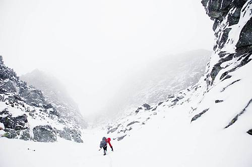 Sněžnice a hůlky nasadit, do batohu sváču, mačky, cepín, kus provazu co kdyby náhodou něco (ee tedy jednu půlku, pro znalce) a hurá směr Mengusovská dolina. Cesta je příjemná, fouká jen tak decentně, akorát je to pořád hróóózně do kopce. Asi už stárnu nebo lenivím nebo co...