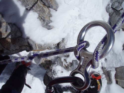 Starý fixy tam zůstávají viset, ale letos dávali spoustu nových a je to slušně rozeznatelné. Vlastní lano si nahoru nebral nikdo, to je šílená zátěž navíc a navíc by zakládání vlastního slaňování zdržovalo. A do třetice, slaňování na většinu úseků není nutné (dají se slézt), akorát je mnohem rychlejší a pohodlnější.
