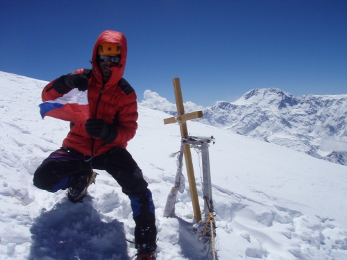 Teď už k samotnému výstupu na Khan Tengri a... jenom na Khan Tengri. Během něho se bohužel opět ukázalo, že člověk sice může být v sebelepší kondici a být sebelepším lezcem, ale pokud mu příroda nenadělila ty správné buňky, s vysokou nadmořskou výškou se prostě a jednoduše nepopasuje. Nepomohla ani poctivá aklimatizace, takže z 3. tábora na vrchol jsem nakonec lezl sólo, zatímco Karel si vyběhl aspoň na šestitisícového Pika Csapareva, přes nějž vede normálka ze severu. Hlavně ale vyplynulo na povrch, že spolu rozhodně nemůžeme lézt na Pobědu, kde se stanuje ve vyšší výšce a delší dobu. Po Chánovi jsme tedy původní plány seškrtali o tři týdny a vrátili se domů.