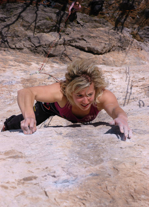 Ne, nelekejte se, krásná italská lezkyně se nadala na focení metodiky do staroindických textů, ale podnikla v Iseu první přelez převislé linie nazvané Kama Sutra a hodnocené M13 +.