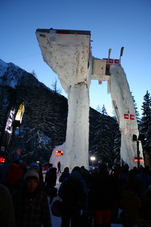 V Ženevě vyzvedáváme od Lukina Martinu a krátce před šestou jsme v Champagny. Ještě po cestě se rychle domlouváme s Olgou Kosek z Polska, takže nakonec bereme apartmán pro pět lidí a ubytování vychází velmi příznivě.  Program začínáme společnou večeří závodníků a organizátorů, technický meeting už si odpouštíme a jdeme raději chystat zbraně a spát. Přeci jen, stěna v Champagny je hlavně ledová a tak moc nevíme co od závodních cest čekat.