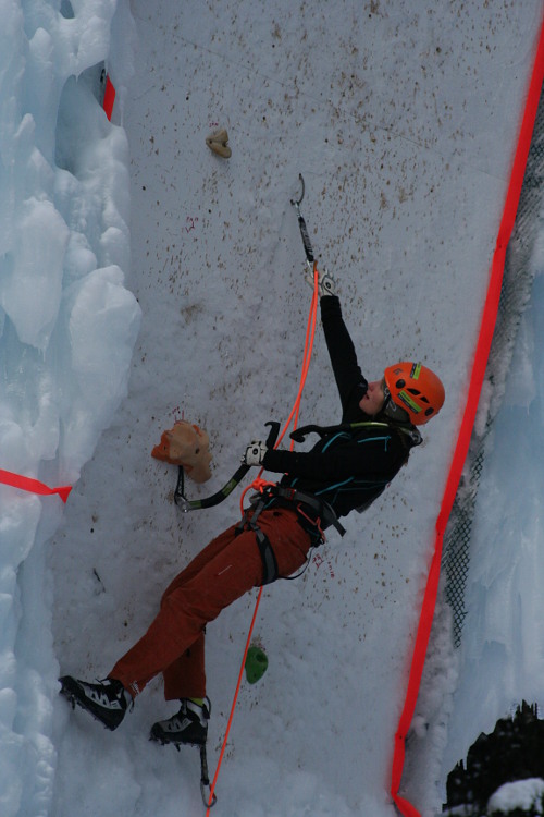 Jako první nastoupila Martina, cesta jí sedí, takže poměrně v klidu dolézá do restu v ledu, ale v přechodu do stropu jí najednou vypadává zbraň. Ani moc sama nevěděla co se přihodilo a tak smutek, protože síla i čas, to vše bylo. Na videu je vidět těsně před pádem zbraně sklouznutí nohy, takže asi kombinace sklouznutí v okamžiku přechytávání a lehce zmrzlé prsty. I tak je z toho nakonec velmi pěkné 13. Místo, ale to finále bylo možná i o fous blíž než v Saas.
