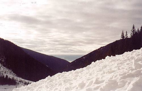 Laviniště v Západních Tatrách; i tato jarní lavinka z ilustrační fotografie vyjela až na značenou turistickou cestu v Žiarské dolině, která je zároveň přístupovkou k celoročně provozované chatě. Západní Tatry jsou oprávněně považovány za nejlavinéznější pohoří SR