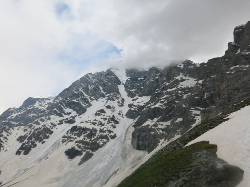„Špatný počasí, špatnej čas“. „Otáčíme!!!“. „Přijistit se lanama a jde se dolů!“. Velí Libor. Jen na sebe koukáme a nejistě začínáme sestupovat zpět. Zastavíme po pár metrech. Počasí se začíná rychle měnit k lepšímu. „To dáme, ještě to přeci zkusíme, ještě můžeme dál a otočit to i později když to nepůjde“.