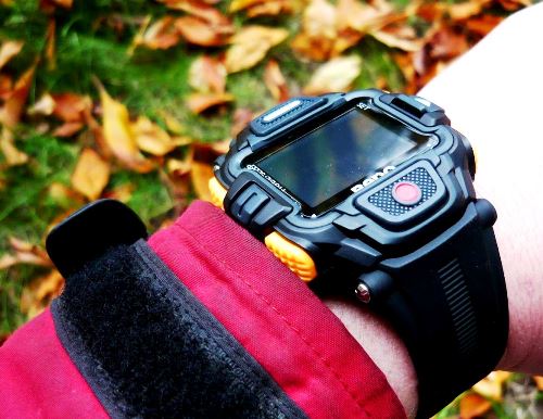 Hodinky ke sledování záběru se nám pro lezení nakonec moc nehodily. Buď sleduješ a natáčíš hodinky, nebo je nesleduješ a natáčíš skálu a lezení. Hodinky také trochu překážely ve spárách.