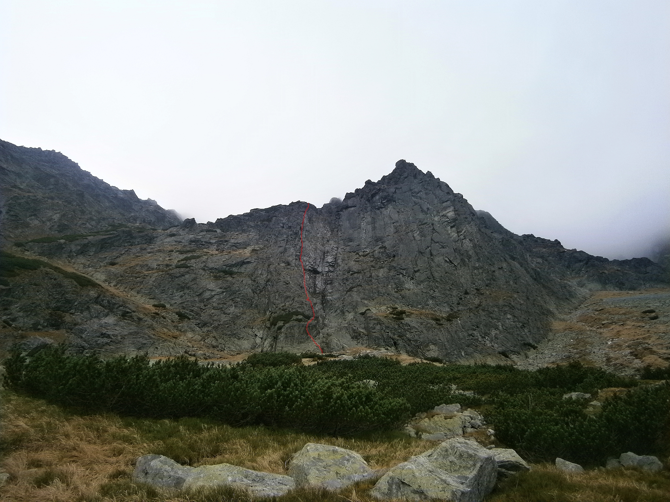 Vyrážamé skoro ráno z Popradského plesa, prístup k stene je relatívne krátky a jednoduchý čo nám maximálne vyhovovalo, o pol siedmej ráno sme teda pustili do práce.