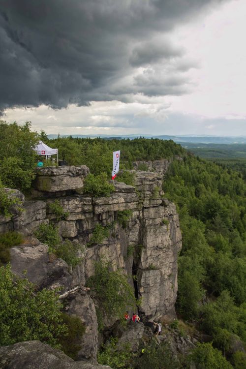 Poslední týden příprav byl hodně intenzivní. Každodenní bouřky a lijáky moc na klid nepřidávaly. V sobotu ale úplně vymeteno a vítr. Začátek dne byl jako vymalovaný. Bohužel po dvou hodinách závodu přišla první ze tří bouřek. Moc se nelezlo, ale i tak vítěz vylezl několik 7C a 7C+ a vítězka 7B+.