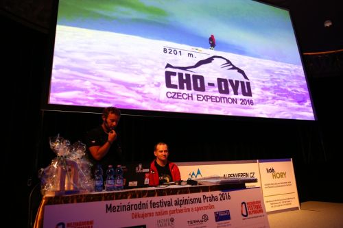 Potom už vstoupili do stopy dva alpinisté. Honza „Tráva“ Trávníček a nevidomý horolezec Honza Říha vtipně povyprávěli o letošní expedici na Cho Oyu, kdy „Tráva“ stanul na své již páté osmitisícovce a druhý Honza, skvěle podpořen svými spolulezci, dosáhl svého výškového maxima 7600 m.