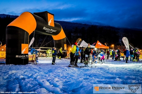 Rock Point Dynafit Skialp Tour - lyžákyPřijďte si poměřit své síly a zažít atmosféru večerního závodu. Pro každého účastníka máme připraven malý dárek a startovní číslo si budete moci nechat na památku. V závodnické tombole pak můžete vyhrát hodnotné ceny. Start je v 16:30 hodin u našeho stánku. Trasa vede po sjezdovkách a přilehlých cestách. Převýšení 300 - 500 m. Celá délka závodu je cca 3 km. Pokud si budete skialpovou výbavu na závod půjčovat na místě, nezapomeňte si ale vzít své vlastní hůlky!  Povinná výbava – čelovka, nabitý mobil, skitouringový set. Startovné pro předem přihlášené je 200 Kč. On-line přihlášky můžete vyplňovat do středeční půlnoci před termínem závodu. Přihlásit se můžete samozřejmě i na místě v den závodu, ale startovné již bude 250 Kč.