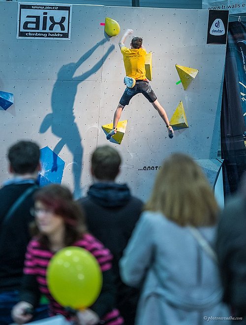 Tím nejdůležitějším prvkem kvality závodu je ovšem stavěč, takže pro takovou úroveň stěny a chytů jsme nemohli oslovit nikoho jiného než Honzu Zbranka, jediného stavěče v ČR s licencí IFSC.