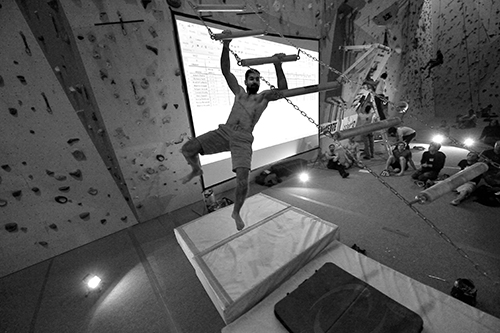 Kdo 10boy nezažil, tak vězte, že je to strhující podívaná, která dokáže nadchnout i takové stárnoucí lezce, jako jsou pořadatelé. Aspoň po závodě jsem si zkusil dvě disciplíny, Bacharův rotační žebřík a „panelák“, tj. kampus board na stisk zboku, na medvěda, což má připomínat smrtící atletický závod na 400 m. Ačkoli udělám ještě dvanáct shybů, tak ani na třetí pokus jsem nedal jediný přešah na rotačním žebříku a na „paneláku“ jsem visel nekonečné 3 sec.! Což ukazuje, jak jsou to tvrdé disciplíny.