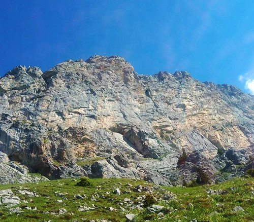 Nervózní první délka, nalezl jsem dlouho. Furt jen někde vrtám, ale ta krása je omračující. A další délka je už jako kdybych lezl denně:-) Skála jak z pohádky. 6 délkové 7a s nýty 3-5m od sebe prověří techniku, morál i sílu. Seznamujeme se při lezení s místními lezci a oni mě poznávají a hned nám doporučí údajně nejhezčí cestu tady a nej délku v Bernských Alpách za 7b. Po slanění sejdeme k autu, uvaříme a natěšený jdeme spát už v 9.30. Místa na spaní je tam všude dost, takže žádný problém. Ptám se: Lukasi, jsi v spokojený? A on se jen směje:-))