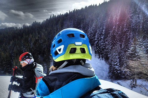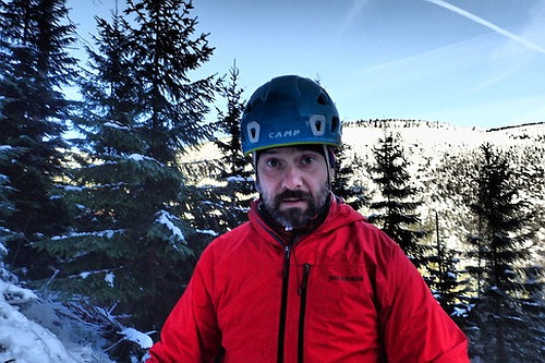 CAMP Storm Testování na skialpech. Helma dobře seděla na hlavě i s nasazeným šátkem.