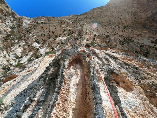 Jak se píše v článku, je soutěž o 1RP či OS;-) Nebylo to v mojich silách vlastně jakoukoliv délku skoro lízt RP po tom boltovaní. Vše je odhad dle mojich zkušeností, přeci jen jsem v téhle obtížnosti udělal mraky cest, ale uvidíme. Dle mě, nic těžšího na Sardínii teď asi není. Myslím multipitch. Hotel Supramonte, Mezogiorno di fuoco a další jsem lezl a tohle je za mě určitě těžší. Abych byl schopný tohle lízt, musel bych přestat vrtat a odpočinout si, ale když má člověk pár dní jen dovolené, to nejde:-)) Ale pro někoho to bude určitě giga výzva, teď tam je akorát kámoška a má 150m lan pod nástupem už. A leze až 8b+, tak třeba ona bude první;-)