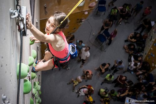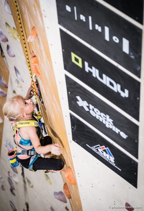 Na rozdíl od nás na baru se s tím mládežníci na stěně nepárali a užívali si na max. lezení na obtížnost od Silvie a Lucky Rajfových, bouldry od Davida Kozla a Radovana Součka i speciálně pro závod postavenou nestandardní rychlostní cestu s regulérní časomírou. Děkujeme Štípkům za zapůjčení.