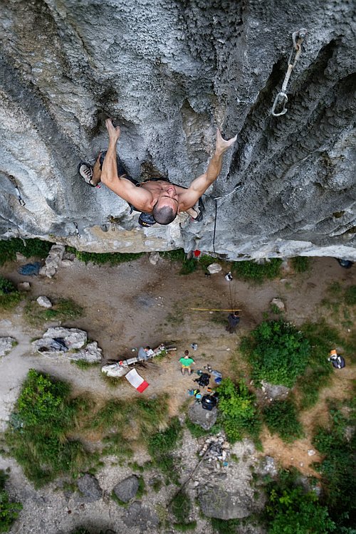 První cestu jsem přelezl v srpnu 1985, normálku z náhorky na Budulínka na Ostaši. Ale seriózně jsem začal lézt v lednu 1994 v Ostravě na Eliassu. Byla to hrozná móda u nás na gymplu, kde učil tělocvik lezec Jarda Lhoťan, všichni s lezením začali a já u toho vydržel. A pak jsem dostal na jaře 2003 nabídku jít pracovat do jižní Francie na rok až dva. Trochu se to protáhlo. Tak jsem tu našel stěnu, zapadnul do komunity a začal hodně lézt venku. V prvním 8c+ jsi mě odjistila ty v říjnu 2011, to bylo Quenelle Trophy. Následoval Asai XXL v říjnu 2013, ten se bere jako 8c+/9a. No a v září 2015 přišel můj (zatím) životní výkon a cesta Abyss. Takže v dévátém stupni jsem byl tuším čtvrtý za Rosťou Štefánkem, Mrázou a Adamem. Proč se ptáš, moje přelezy někoho zajímají?