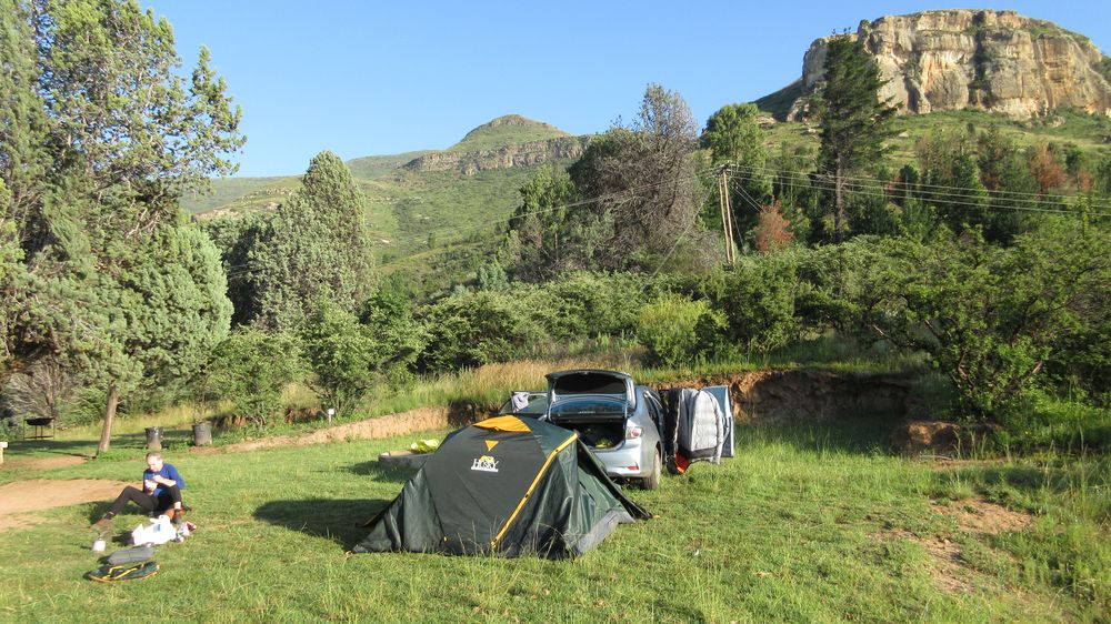 Dalším směrem byla cesta na jih přes Lesotho. Našli jsme si přes AirBnB nocleh za malebným jihoafrickým městem Clarens u hranice těsně před Lesothem na farmě Old Mill Drift ve vlastním stanu. Sice byl příjezd v závěru pro naší corollu takřka nesjízdný, ale nakonec to vyšlo a mohli jsme zde v panenské přírodě přenocovat a navíc objevovat lezecký potenciál na tamních pískovcových skalách. Vylezli jsme zde několik bouldrů, zjevně prvovýstupů. Když nás viděla lézt majitelka farmy, tak nabídla, že zde zdarma ubytuje toho, kdo zde stráví nějakou dobu a vytvoří zde lezecké cesty. Pískovec se nám zdál spíš měkký asi něco jako na Hrubici. Kdo by měl zájem, zde na ní najde kontakt: oldmilldrift.co.za.