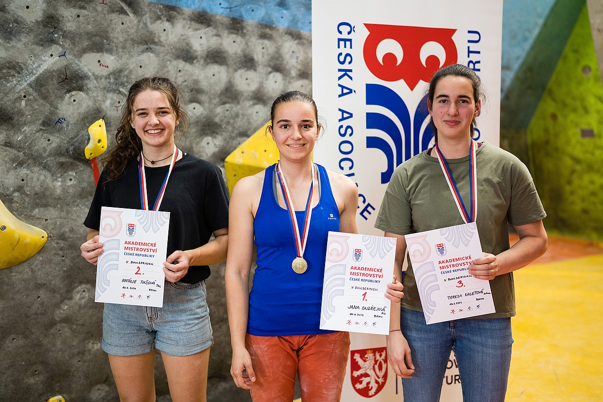 Po kvalifikaci stavěči přehodili kvalifikační bouldry na finálové, nejprve pro ženy a poté pro muže. Už od pohledu bylo jasné, že finálové kousky budou mnohem zapeklitější a divácky atraktivnější. Sešla se i pěkná skupinka diváků, a tak o skvělou atmosféru nebylo nouze. Prvně se na start postavilo 8 nejlepších žen z kvalifikace. Měly 4 bouldry na to, aby předvedly, kolik sil ještě mají. Nejvíce se dařilo Janě Ondřejové z Masarykovy Univerzity, která se tedy zaslouženě stala akademickou mistryní v boulderingu pro rok 2022. Za ní skončila Natálie Tužová z Technické univerzity Liberec a třetí byla Tereza Kaletová z Univerzity Palackého Olomouc.