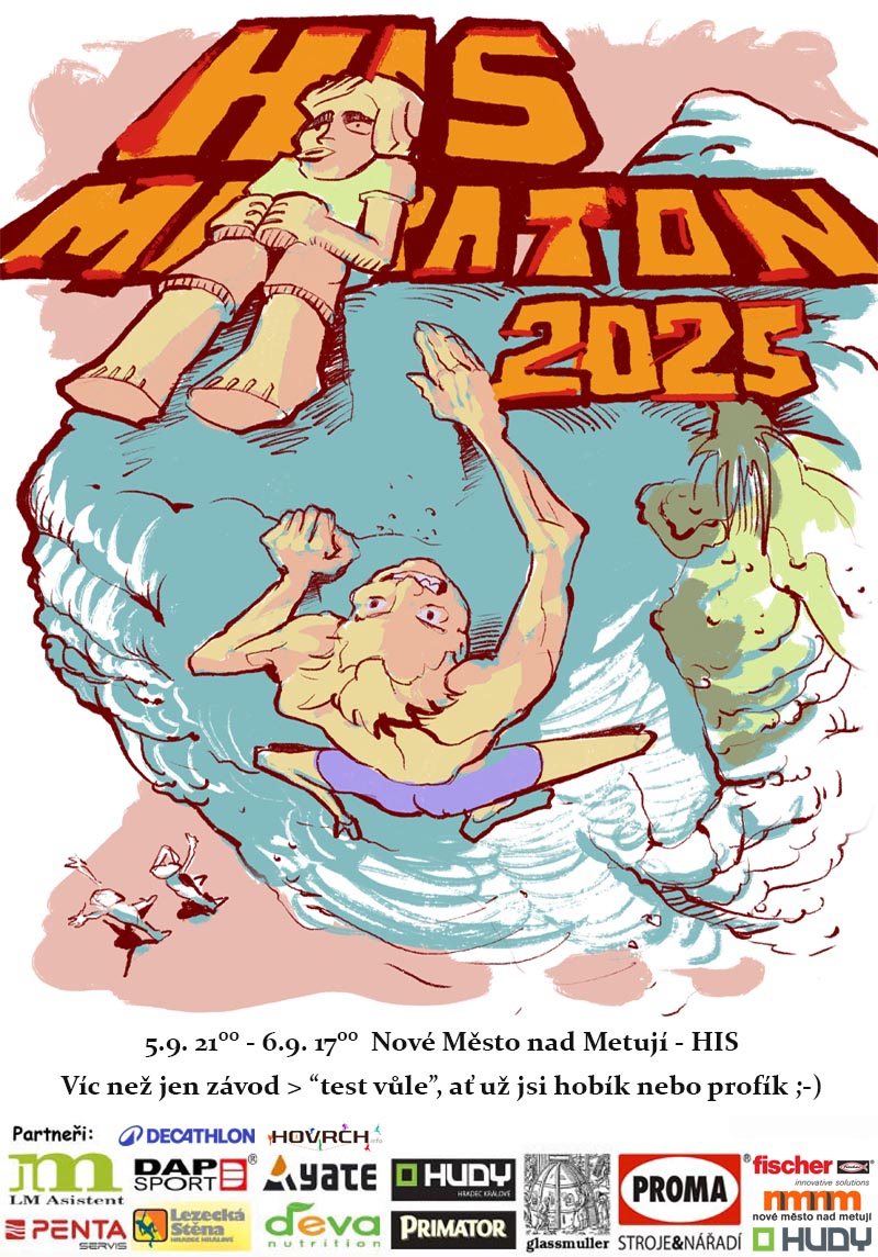 Srdečně Vás jménem HOVRCH z.s. zvu na 17. ročník HIS maratónu, který se tradičně koná v Novém Městě nad Metují. Je asi zbytečné vysvětlovat zaběhlá pravidla, zejména když se od minulých ročníků v podstatě nic nezměnilo. Ale pojďme si to zrekapitulovat. Závodníci mohou vystartovat již 5. září ve 21:00 hod. Ti opatrnější samozřejmě kdykoliv, až do 6.9. 16:00 hod. Stejně jako v minulosti bude i letos připraveno 150 cest. Závod bude ukončen, úderem 17:00 hod. Jak víte, jedná se o závod v lezení. A protože není v HISu těžkých cest, o výsledném pořadí musí rozhodnout vytrvalost, rychlost, ulezené metry, zvolená taktika. Cílem HIS maratonu povětšinou nejsou mimořádné výkony světového významu. Spíš, aby si každý zalezl, u toho zkusil překonat vlastní hranice a trošku se večer poklábosilo.