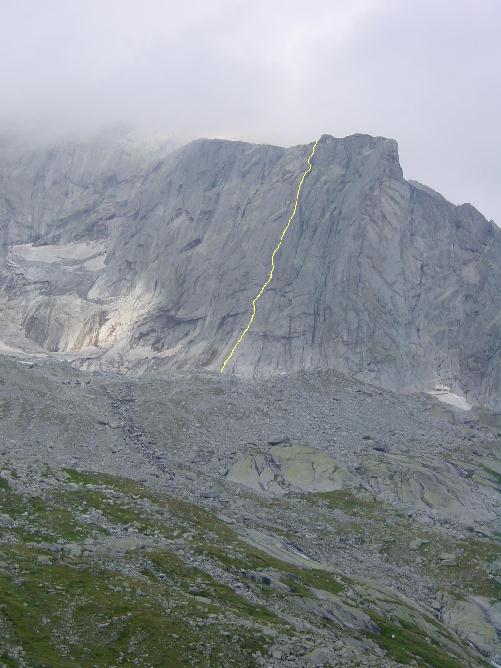 Pro rozlezení a seznámení se s klasifikací volíme cestu Guronsan 5c+ na Pizo Torrone Occidentale – devět délek v pevné ledovcem ohlazené a ochlazované skále. I v letošním tropickém létě zde teplota nevystoupila nad 15° C. Z cesty je dobře vidět do stěn Punta Rasica a Punta Allievi.