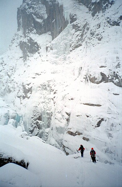 C: Shiva Lingam - nádherná oblast s největším počtem cest s délkou od 80 do 140 metru a obtížností WI 4 - 6, bohužel je nejdále z popsaných oblastí a navíc otočena k jihu. Na jaře je tedy třeba dát pozor, ledy bývají dost odtáté od stěny a často drží jen silou vůle (vaší).