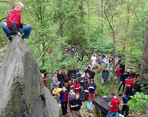 O víkendu totiž proběhly unikátní závody na přírodních boulderech. Poděkování patří hlavně stavitelsko/čistitelské dvojce Petrovi a Karlovi protože připravili přes 100 super boulderů od  4 až 7C+ Fb. Na závody se dostavilo rekordních 70 účastníků z toho asi 9 dívek.
