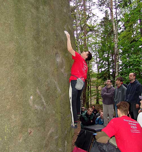 Lezlo se tři hodiny. Bouldery byly obodovány a samozřejmě, že se vyplatilo vylézt méně těžších boulderů, než se honit po lese a sbírat počet. Např. za 5A byly jen 3 body, za 6A 10 bodů (přičemž, 6A čka už byly docela slušný štípy) 7A je už za 50 bodů a nejtvrdších nabízených 7C+ za 280 bodů. Na postup do finále nakonec stačilo 400 bodů, ale protože bouldering není pouze o síle, kromě bodů bylo potřeba přelézt alespoň čtyři z osmi tzv. povinných technických boulderů (5B až 7B