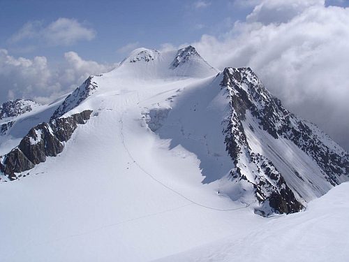 Wildspitze, hřeben mezi severním a jižním vrcholem.