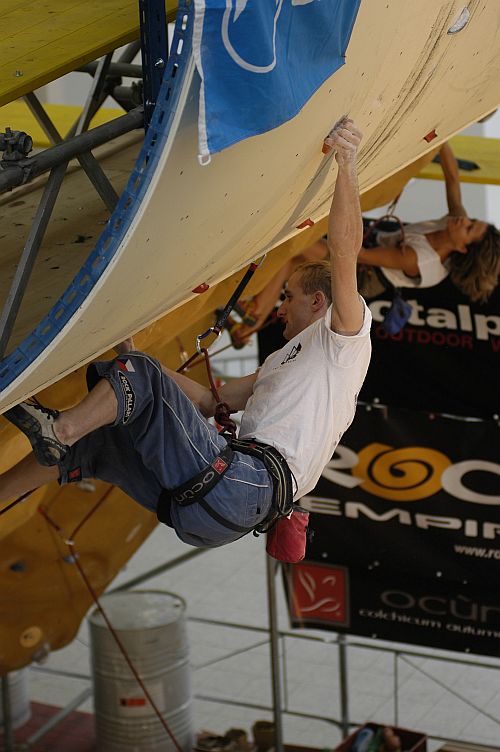 Tak já jsem věděl, že Flavio asi dolezl hodně vysoko. Že buď topoval nebo byl jeden dva chyty pod topem a myslel jsem, že i jiní vylezli vysoko. Je to těžký jít poslední a ještě těžší je to tady doma před těma lidma. Já se s tím vyrovnávám letos vlastně od začátku, protože od začátku světový pohár vedu, takže vždycky v kvalifikaci i v semifinále jdu poslední. Je to opravdu těžký, protože jeden z těch sedmi lidí většinou vyleze vysoko.