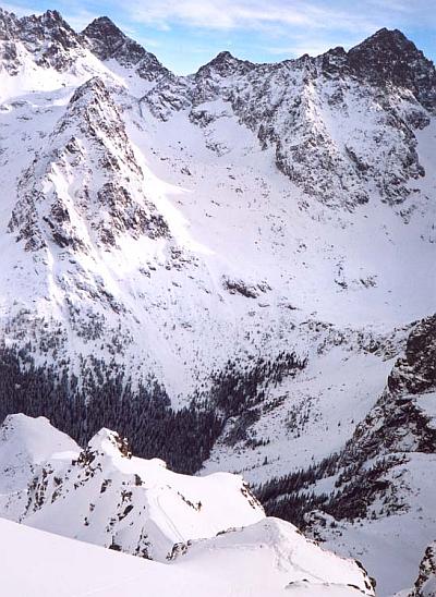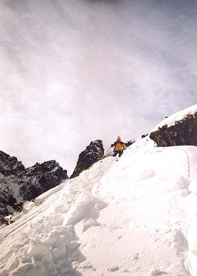 zjazd z vrcholu. hrebeň ktorý vidieť pod nami je tá exponovanejšia časť zjazdu