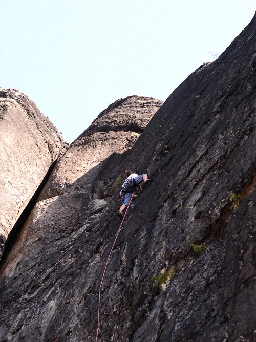 Jardo paráda, jako vždy. Moc se mi líbí věta: Na Dunkle Wand vede 14 cest. Do jejího těla jsou zavrtány celkem dva kruhy, z toho jeden je slaňák. Myslím, že je výstižné pro Sasko vůbec. A já se od svého posledního pádu bojím ještě víc!