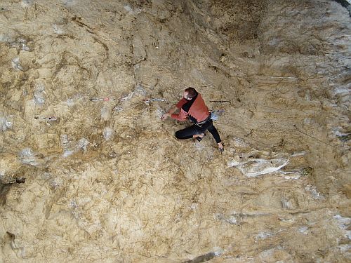 V piatok okolo obeda strašný rev. To nie je nič nezvyčajné, v oblasti okolo Martina Krpana pôsobila nemecká skupina a tak sa rôzne pazvuky niesli celým údolím viac menej stále. Teraz však rev neustával. Po chvíli sme vypátrali aj zdroj. Holou platňou v strede Peče skáče chlap a strašne pri tom reve. Vyzeralo to s ním všeliako, nakoniec však doskákal a dokričal celých 42m. Mumlali čosi o projekte, ale kto má tej slovinčine rozumieť. Každopádne ide o Mateja Sovu a jeho prelez cesty Ekstaza 8c+/9a. Vyzerá to fest pekne, ak na to niekto máte určite si vyskúšajte. Viz slovinský web: ksp.pzs.si.