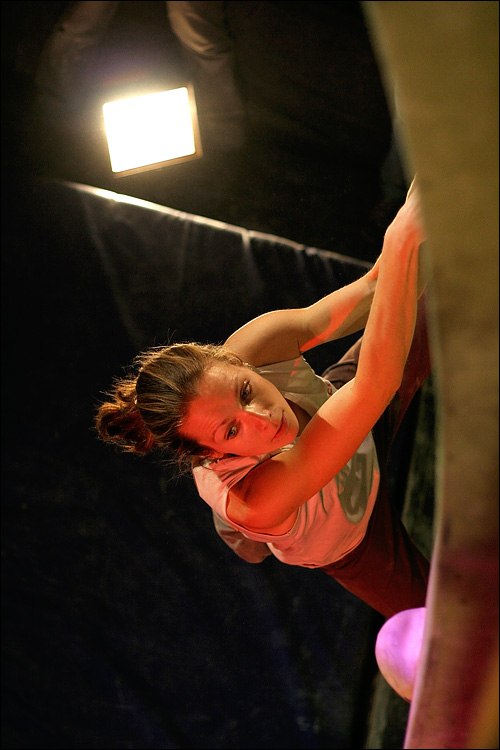 Každopádně se ukázalo že lezení u nás je na skvělé úrovni a tak byl útok nájezdníků odražen a korunován ukořistěním žlutého Mejcup trikotu a slavným vítězstvím Adama Ondry (Singing Rock, Saltic) a Silvy Rajfové (Rajče,Triop) z Brna. (že by to bylo Moravským krasem? :) Stavěči boulderů Radovan Souček a David Kozel připravili na čtyřech profilech od Pilkina (Kameny) pěkně vypečený kousky. Každý boulder byl o něčem jiným a tak každý dostal možnost předvést co mu sedne nejvíc. Oblíbený byl semifinálový přeskok do čtyřky a finálová trojka připomínajíci bouldering na písku což zjevně zanedbává třeba Jirous Přibil (Aix) a tak se musel spokojit s druhým místem a sedřenou holení…nebo možná zapomněl lezečky se zimním vzorkem? :) Skvělou techniku lezení předvedl starouš Andrejko Chrastina (Aix) a vybojoval třetí pozici.