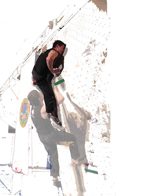 Bohužel pro něj se však jednalo o závody s mezinárodní účastí a místní rozhodně nebyli v početní převaze. Tohoto přátelského, přísně lokálního setkání lezců ze Šumavského příhraničního regionu (Blaibach, Rosenheim, Regensburg, Plzeň, Budějovice, Praha, Ústí, Brno....) se zúčastnilo 8 lezkyň a 40 lezců. Závody byly připraveny s typicky německou dokonalostí. Speciálně jen pro tuto příležitost vyrostla v místní tělocvičně zdejších sokolů stěnka skládající se z 5-ti profilů, za než by se rozhodně nemusel stydět ani Český pohár. Na nich pak vyčaroval pan Azbest s pomocí místních borců 5+5 excelentních problémů für damen und herren, na kterých se ti nejlepší kvalifikovali do stejného počtu bouldrů finálových.