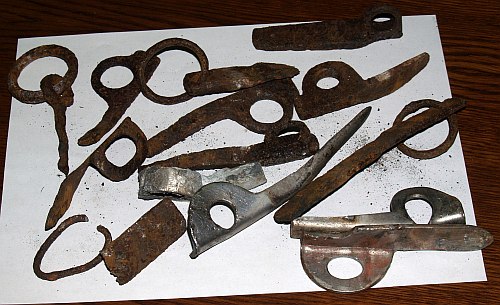 No a to, co jsme vytloukli, vidíte na fotkách. Někdy není úplně pěkné, nechat se unášet fantazií, při tomhle pohledu. Např. první skoba v nástupu na Šimdu – horizontálka délky 1 cm ve skále a materiál – poctivá škodovácká čorka. A nebo první kroužek ze středu Svatební. Můj na klíčích má dvojnásobný průměr.