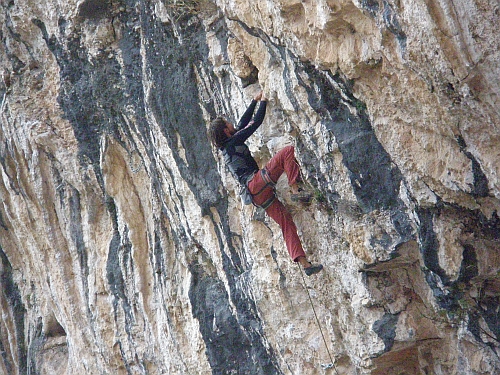 6. Ricacera L1: 8a / L1+2: 8a+ spodek po malých chytech, vršek po krápníkách, 42 m