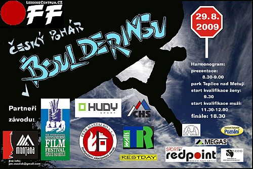Malé info o blížícím (29. 8. 2009) se Českém poháru v boulderingu v Teplicích nad Metují už proběhlo, zde jsou doplňující informace: