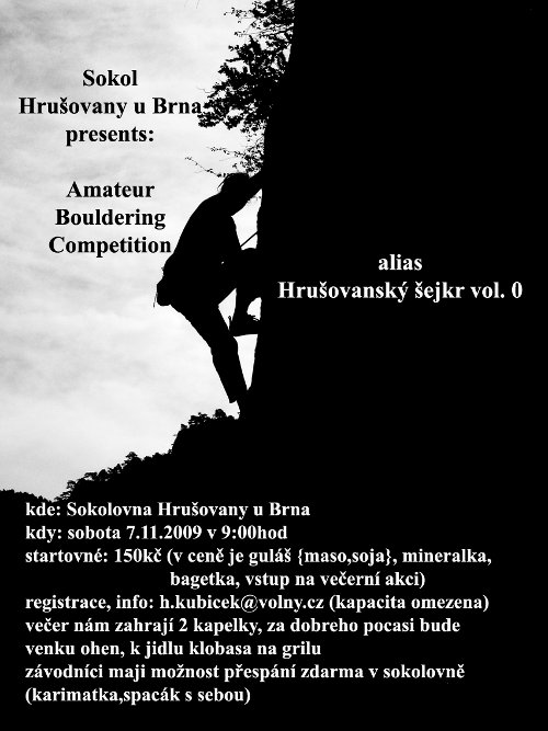Je mi známo, že se termín kryje s Life-sportem v Brně, kde je svěťák a festival odourových filmů, což nám při plánování závodů známo zcela nebylo (nebo z neznámých důvodu nám býti známo nechtělo, nebo nám bylo z ještě nejneznámějších důvodů přísně utajeno:)