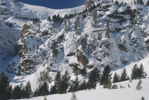 Do Rily jsme tentokrát přijeli po delším odměku a opětovné nasněžení asi 60cm sněhu. To se projevilo na kvalitě ledu, který byl měkký a místy z něj crčela voda. Když jsme si nechali v půlce ledu pověšený štand na druhý den, tak jsme jej ráno našli zalitý 10cm hluboko v novém ledu a nastalo velmi nepříjemné vykopávání. V ledu je možné udělat dvě až tři cesty, každá se nejlépe leze na dvě délky. Pokud si shodíte lana shora (led je možné obejít strmou strání plnou skalek a borovic), vyjdou vám padesátky lana tak akorát na dolní okraj ledu. Každopádně lezení ledu na plných padesát metrů je silný zážitek, hlavně závěrečný kolmý výlez. Led je poměrně obtížný, nalezneme na něm několik kolmých pasáží, z nichž ty řazené pod vrcholem jsou nejpikantnější. Nahoře nad ledem, na jeho levé straně je vybudovaný štand ze tří nových borháků. Jsou umístěny různě vysoko nad terénem, proto pokud najdete jen některé, vězte, že jsou ukryté pod sněhem, ale jsou tam.