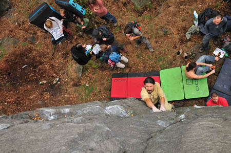 Osm nejtěžších boulderů určilo u žen konečné pořadí. Jako první si na ten nejvyšší stupínek vítězů vylezla Nelly Kudrová. Chlapi měli jako bonus na závěr finále. Do finále postoupilo 9 borců. Jejich postup určilo opět 8 nejtěžších přelezů. Pro zajímavost - např. Martin Stráník dal 3x8A. Finálový kámen se nacházel ve známém sektoru Best of Direct. Zcela nový kámen („Baráček“) se nám nabídl někdy na jaře. Po jeho důkladnějším prozkoumání bylo jasno, že to bude ten pravý pro pořádnou show. Pro finále jsme připravili tři problémy. První problém „Kadeřnice“ 6C+ dali kromě Davida Kozla všichni na OS. Na druhém problému „The blues“ 7C to ze začátku vypadalo dost beznadějně. Pak ale nastoupil Martin Spilka a na 4 pokus to tam poslal. Uffff. To, že Ondra Nevělík i Marťas se Štěpou pošlou The blues na OS, jsem vážně moc nečekal. Byla to parádní podívaná. Jako poslední přišel na řadu vysoký „Krutovládce“ 7B+. A právě tady se rozhodlo. Martin Jüngling ukořistil zónu, která ho usadila na konečném 5. místě. Na 4. místě skončil Martin Spilka, který bohužel odlezl ve vršku boulderu hodně doprava a tak dostal ještě jeden pokus na závěr finále. Únava se ukázala a Martin tedy ukořistil alespoň zónu. Stejně dolezl Ondra Nevělík a díky OS na The blues skončil na třetím místě. Jako poslední přišli na řadu bráchové Stráníci. Oba to seslali na OS a tak o vítězi rozhodl počet bodů z kvalifikace. Takže první Martin a druhý Štěpán. Finále bylo moc pěkné a doufáme, že se líbilo všem jako nám.