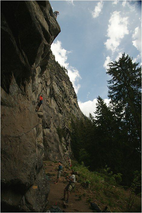 Tak, tak, budu to tady ventilovat znovu: nam, prumernym lezcum (6a-6b+) prisel Ötztal dost hnusny. Skalky jsou vetsinou nekde v udoli, kterym vede hlavni a dost frekventovana silnice, zadna idylka a la Zillertal.