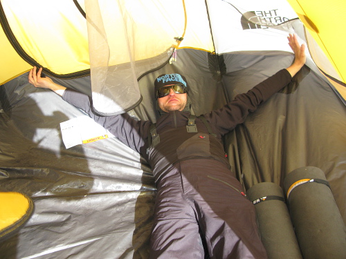 Bylo načase, všichni jsme už byli strašně unavení a také nezbytnost stálého soustředění se na hledání nejlepší cesty pro Honzu, nutnost mluvit na něj, i když už člověk neměl sílu téměř ani sám na sebe, nahoře je málo kyslíku, byla náročná. Předtím mně i Honzovi lehce omrznuly nohy,no, měl jsem toho tak akorát plné zuby. Posledních třista metrů byl Honza fakt hotový, měl krizi a musel jsem ho hecovat, aby šel dál. Podařilo se. Ale celkově to celé bylo lehčí než jsem čekal.