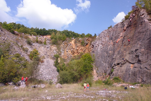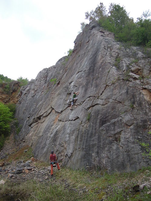 Dvě vápencové stěny koutem rozdělené, lehce položené, místy dokonce kolmé a hladké, s cestami skoro 30 metrů dlouhými, sportovně odjištěnými. Skoro třicítka cest obtížnosti cca 5-8 UIAA, přístup 20 minut po rovině. To je výsledek 5 měsíců lezení a "práce" i zábavy s kamarádama, co si udělali čas jít ven. Ještě se tu ale pracuje.