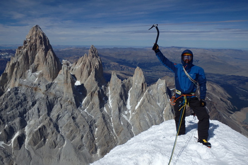 Smolo na vrchole Cerrro Tore v pozadí Fitz Roy from the west