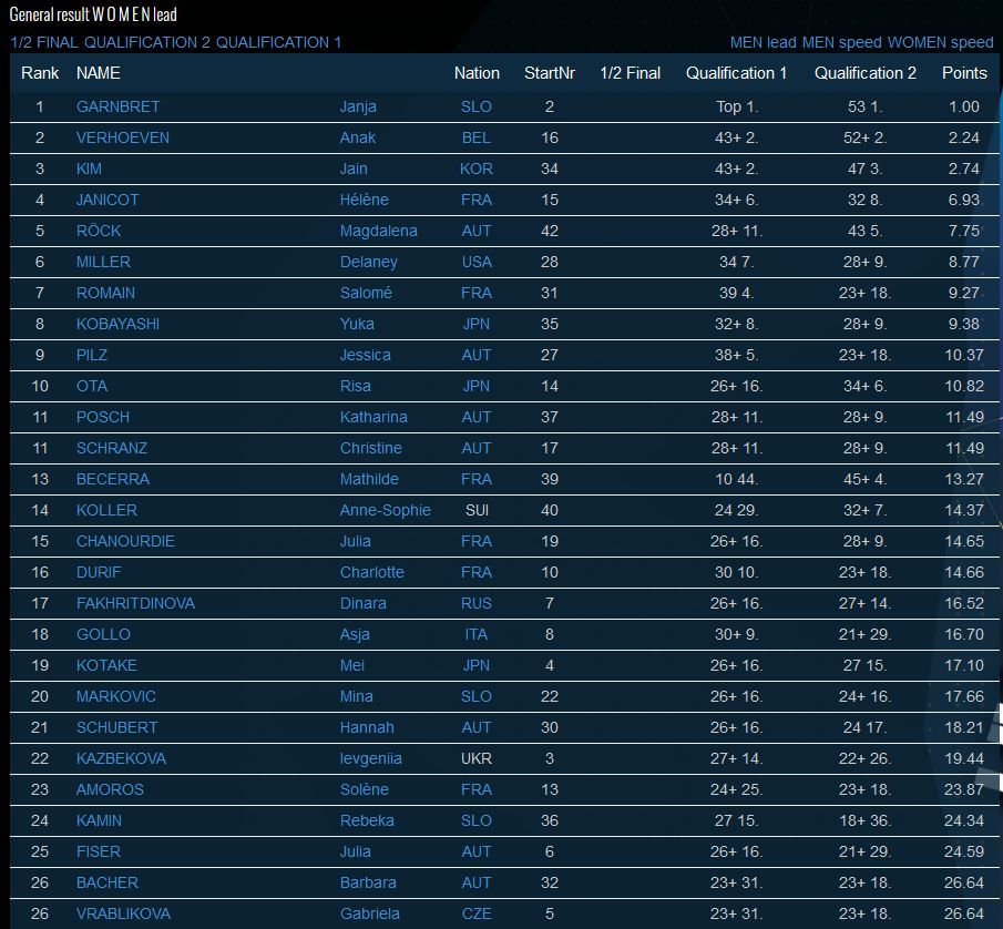 Výsledky ženské kvalifikace na postupových pozicích (po kliknutí uvidíte ve větším rozlišení):