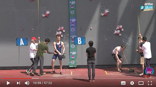 Nakonec k postupu stačilo se zkoordinovat o dva pokusy dříve, či vylézt kolmáč, tam ale nepředvedu prakticky nic. Šance se mi jednou naskytla v nejtěžší dvojce, kdy dolézám pod top, ale doskočit do něj byla řádná bomba. Panují tu hodně teplé podmínky, v čemž se mi neleze moc dobře, ale na to bych se nevymlouval. Japonci nepřestávají překvapovat, tentokrát všech 10 v semifinále (10 z dvaceti), to je úlet. Nezbývá, než se těšit a doufat v lepší konstelaci hvězd do Nanjingu. Tak a teď fandit Liborovi;)."